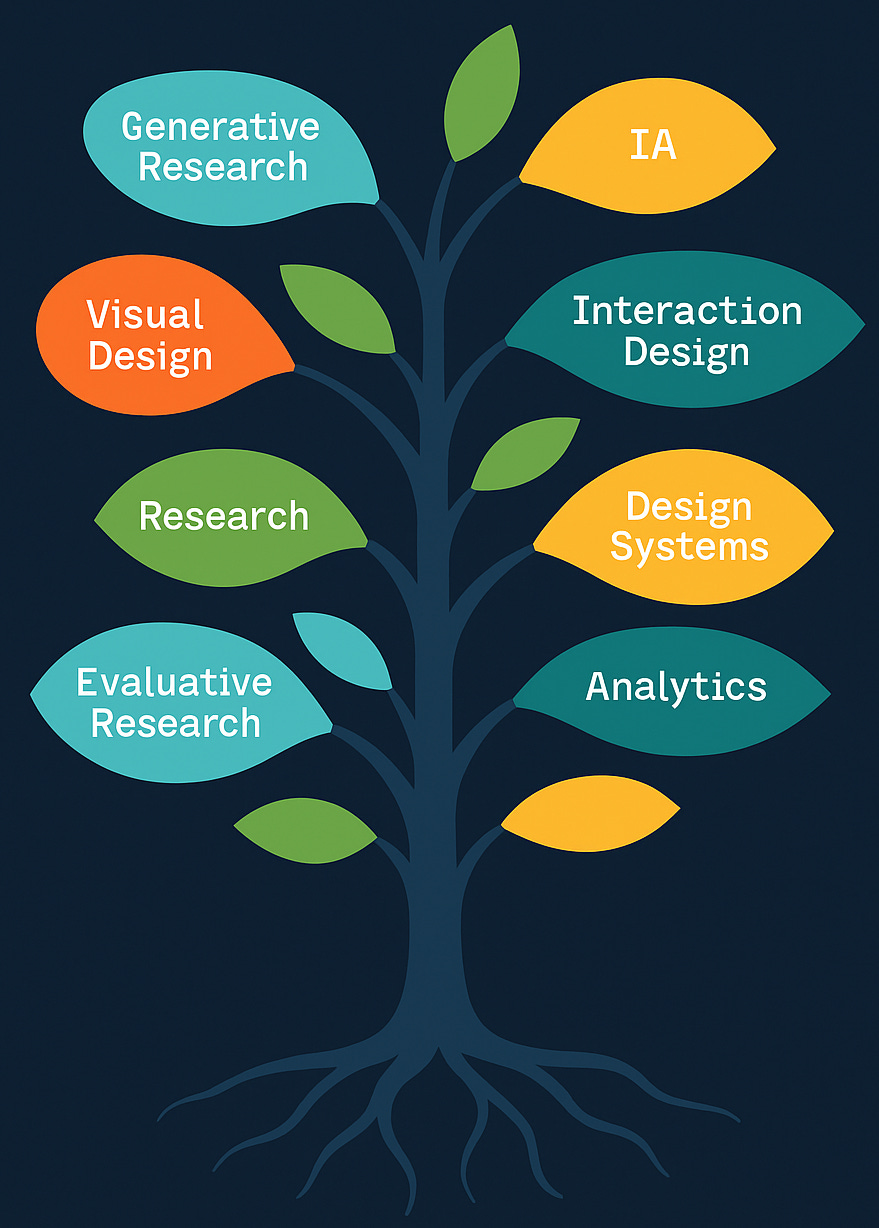 Start by listing the critical skills your team and business require — from generative research, IA, and visual design, to design systems, accessibility, content, analytics, and facilitation.